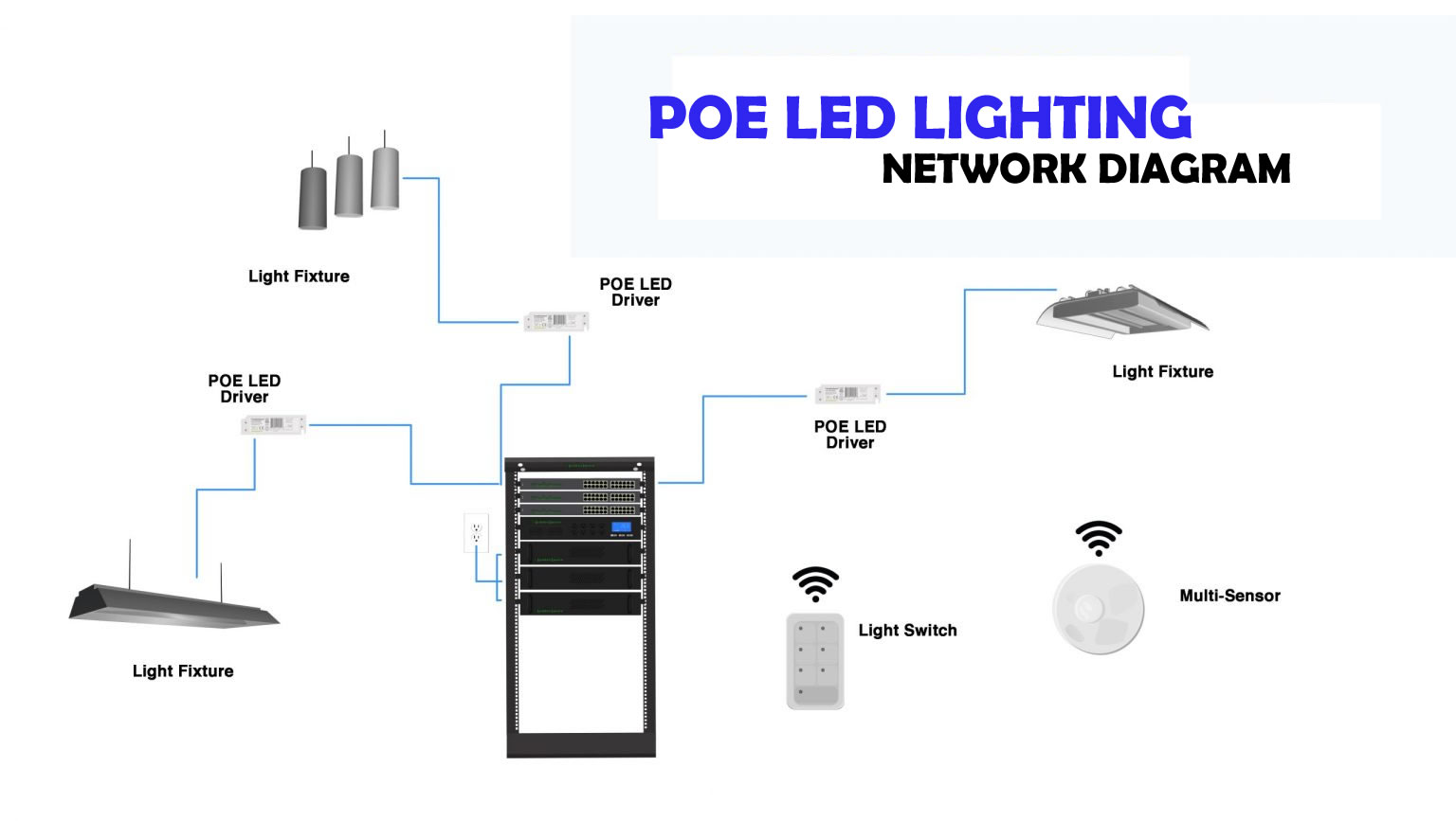 POE LED Lighting is powered by POE Switches through Cat6. The POE LED Drivers provide up to 30Watts of 12-36VDC power to POE lighting fixtures. This makes the deployment of fixtures in a retrofit or new installation flexible and adaptable. The need for conduits to carry cable for high voltage power is in the past. This allows the illumination of any environment to be delivered easily and efficiently, which uses less energy than conventional lighting lowering the cost of ownership.